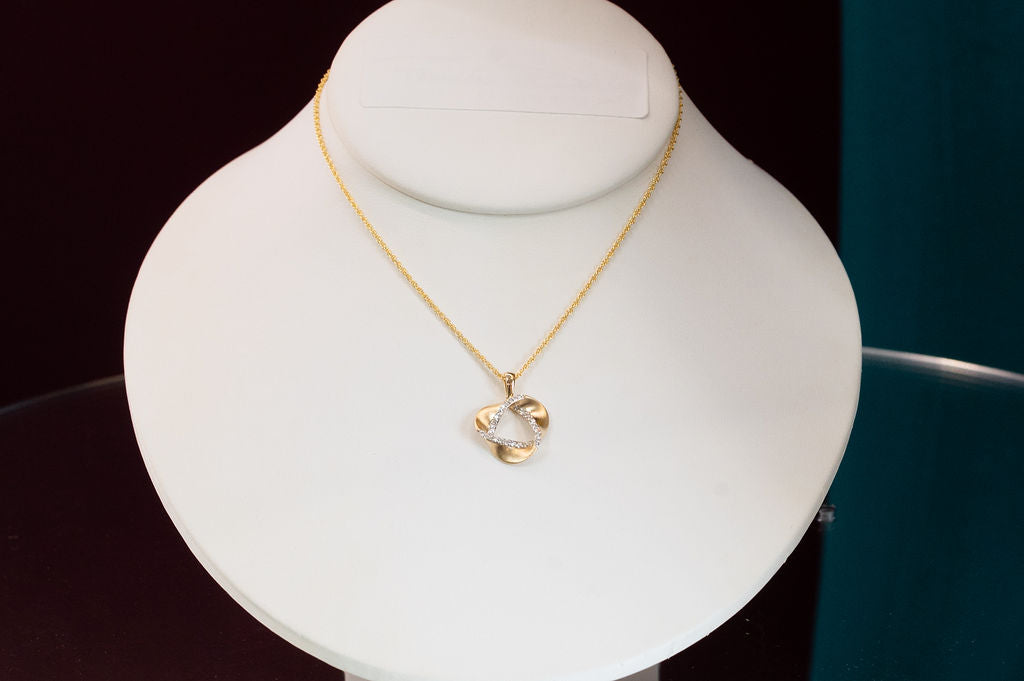 Gorgeous diamond circle pendant available in 14kt yellow gold for that special event or your Golden Anniversary.