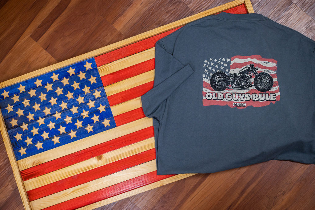 Old guy shirts in different colors and sizes. Great sayings and graphics